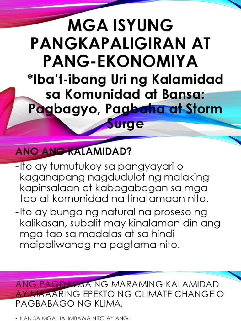 Malaking puwang pa rin kung paano ihahanda ang mga mamamayan at makaiwas sa pinsalang dulot ng kalamidad. You can change your ad preferences anytime. Environmental issue map Pumili ng isang suliraning.