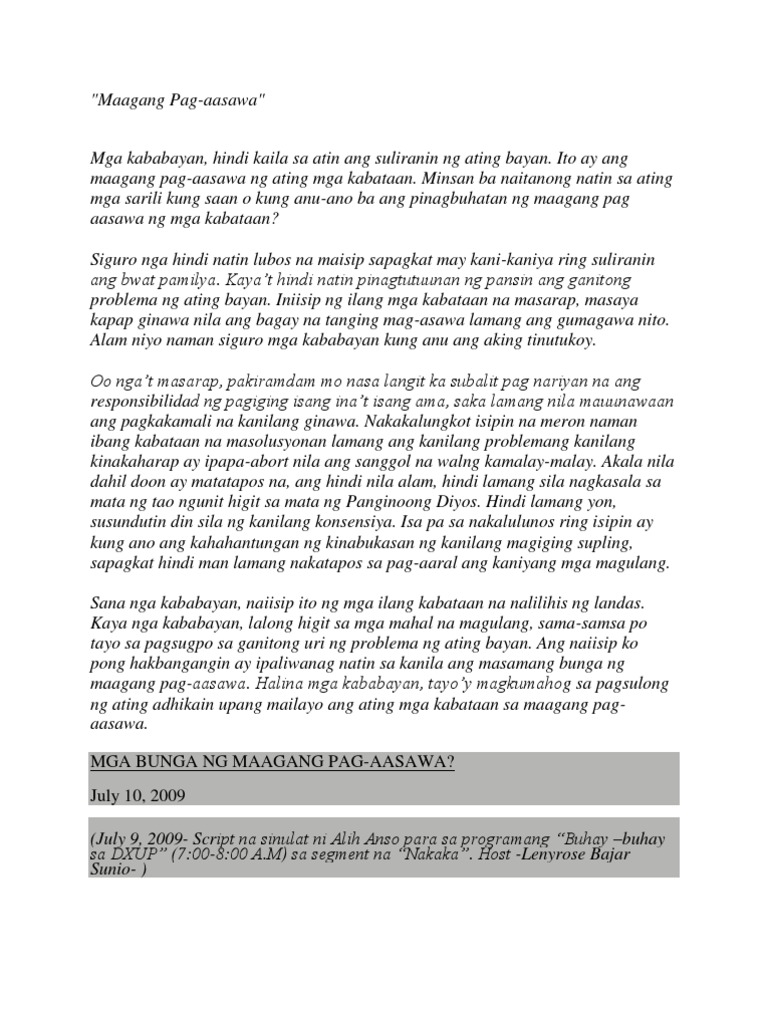 Epekto ng maagang pag aasawa essay. Epekto Ng Maagang Pag Aasawa Thesis Aice Lang Paper 1 Examples Philosophical Papers Vol 1 Example College Topic Proposals. Once you Epekto Ng Maagang Pag Aasawa Essay have discussed details and pricing with our support team you can go Epekto Ng Maagang Pag Aasawa Essay to Order Page and fill all the requested fields regarding your Epekto Ng Maagang Pag Aasawa Essay order. Were not just any essay website.