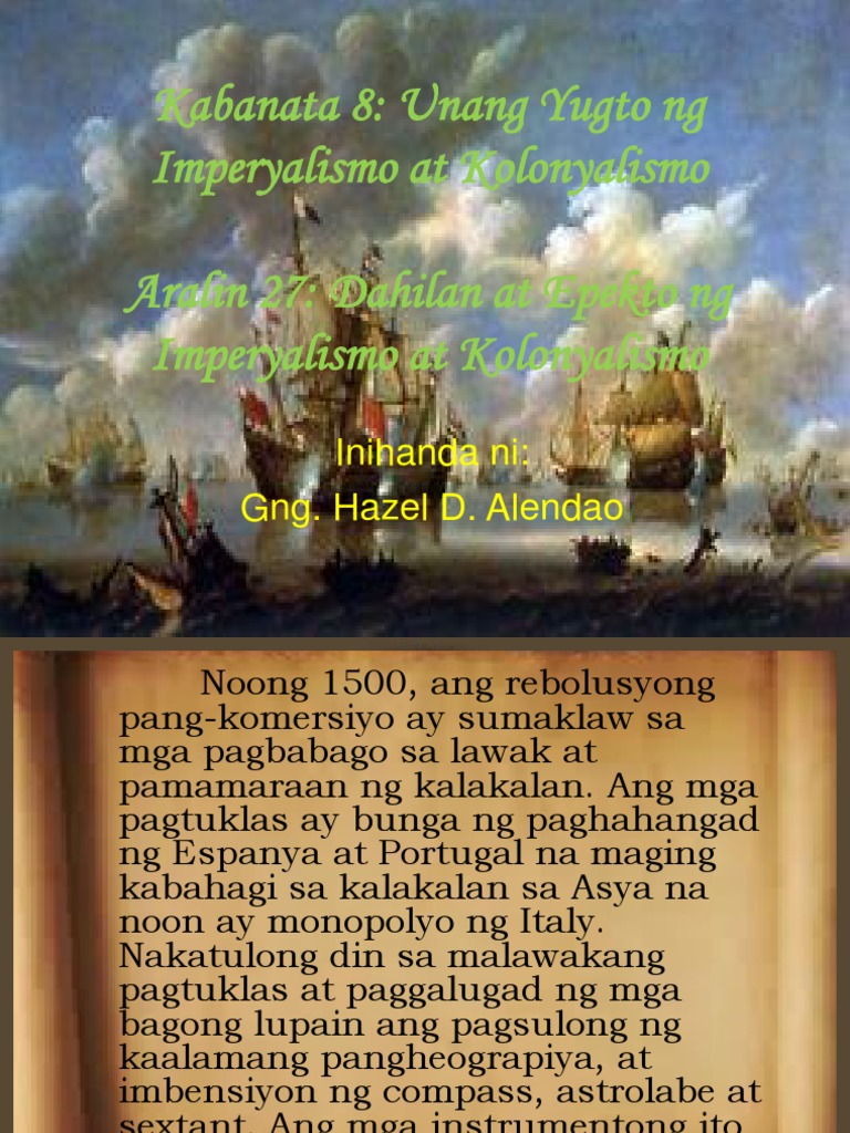 Noong ika-15-17 siglo nagsimula ang unang yugto ng imperyalismoIto ay maaaring tuwiran o di-tuwirang pananakop. IMPERYALISMO pagpapalawak ng kapangyarihan sa loob o labas ng isang bansa-Mga DAHILAN ng KOLONISASYON. PowToon is a free too.