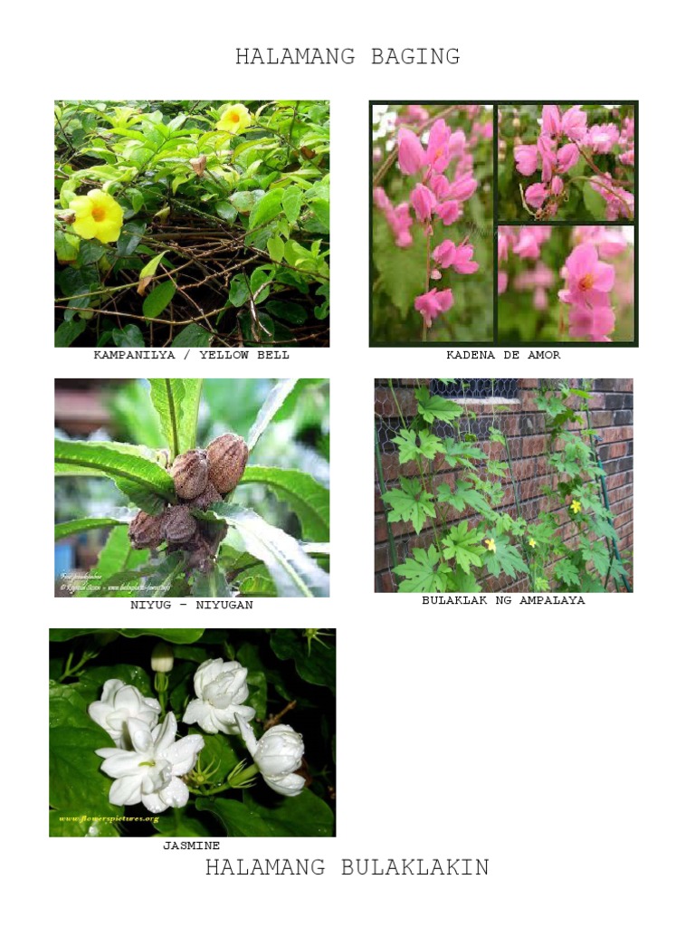 Ipainom sa may sakit 3 beses maghapon. HALAMANG ORNAMENTAL Mga Halimbawa Ng Halamang Pandekorasyon Sa Pilipinas 1. Halamang baging Ito ay mga halaman na gumagapang tulad ng kampanilya niyugnyogan kadena de amor at iba pa.