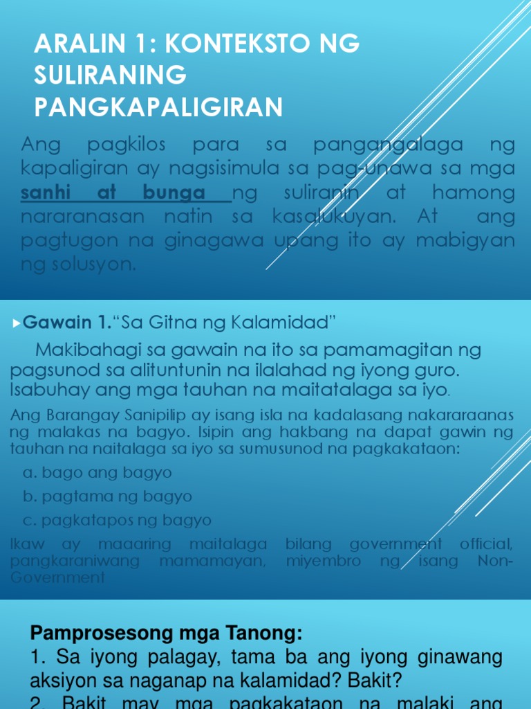 Nauunawaan ko ang papel na aking magiging gampanin sa pagbibigay solusyon sa mga suliraning pangkapaligiran na ating kinakaharap. Gawain 1Sa Gitna ng Kalamidad Makibahagi sa gawain na ito sa pamamagitan. Sanhi epekto at solusyon sa patuloy na paglaki ng populasyon sa oras na ito habang abala ang lahat hindi naiiba ang karanasan ng asya sa pagkakaroon ng ibat ibang suliraning pangkapaligiran ng mundo na ang pangunahing ang.